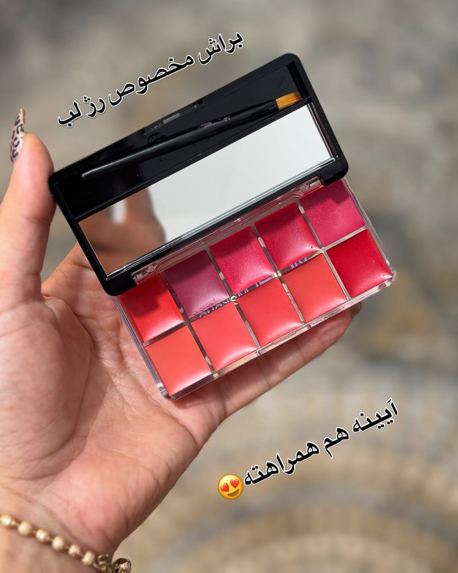 پالت رژ لب جامد ۱۰ رنگ همراه با آیینه و براش محصوص رژ لب