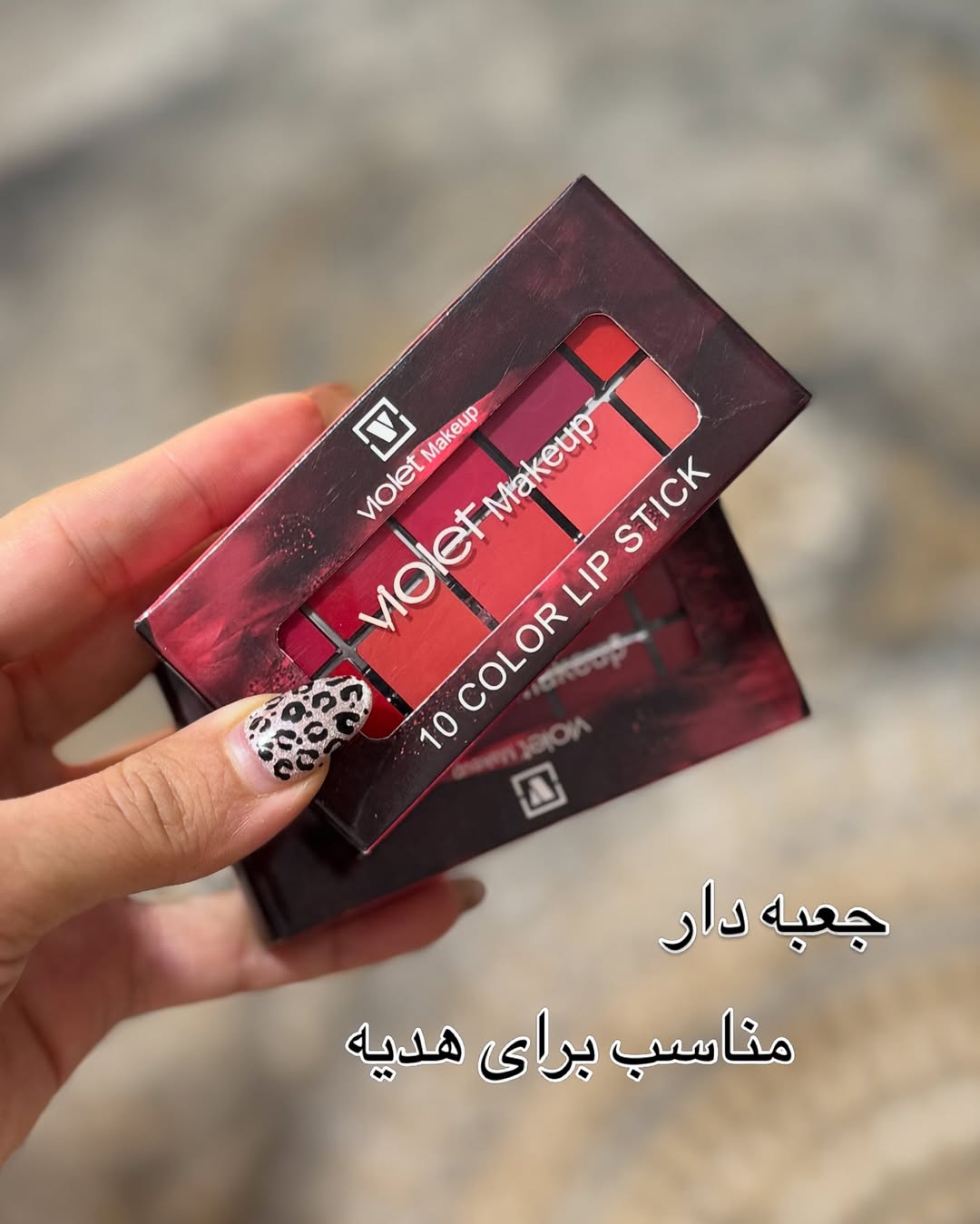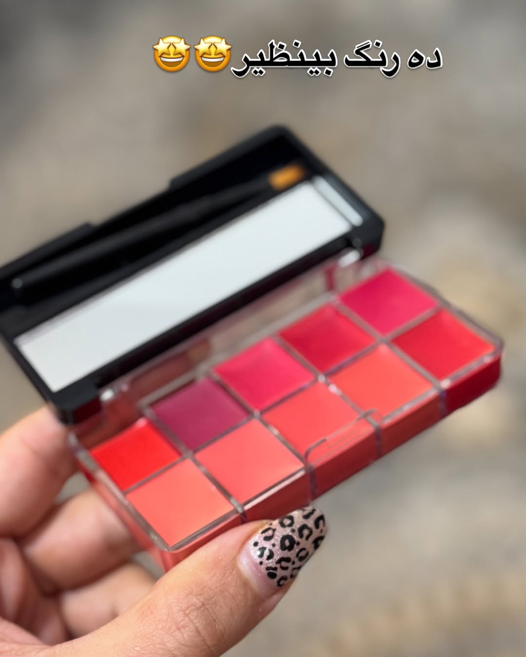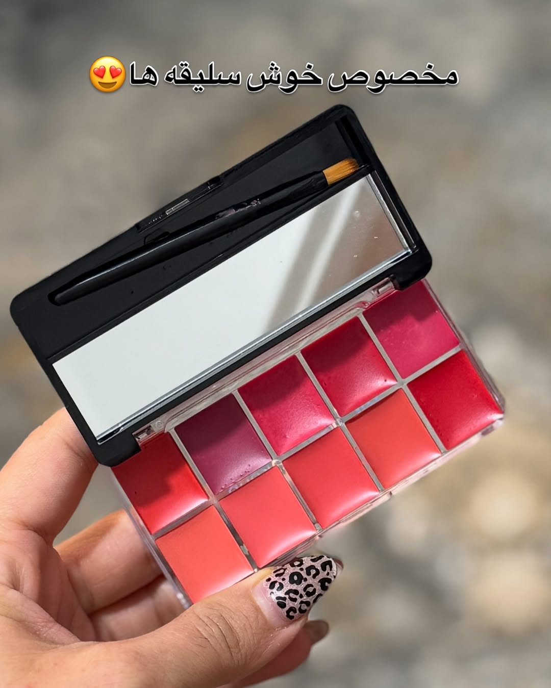 پالت رژ لب جامد ۱۰ رنگ همراه با آیینه و براش محصوص رژ لب