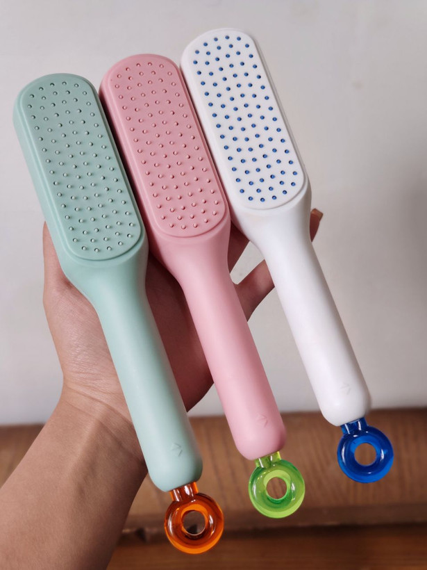 یه اهرم پایینش داره که فشار بدید دندانه های این برس میره داخل و هم موها خیلی راحت از برس جدا میشه هم میتونید کف برس رو به راحتی تمیز کنید😍💁🏻♀️