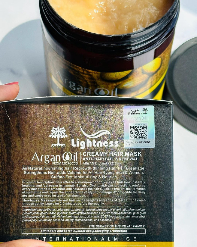 ماسک مو حاوی 95 درصد روغن آرگان برند لایتنس Lightness کاملا اورجینال و اصلی✔️✔️✔️