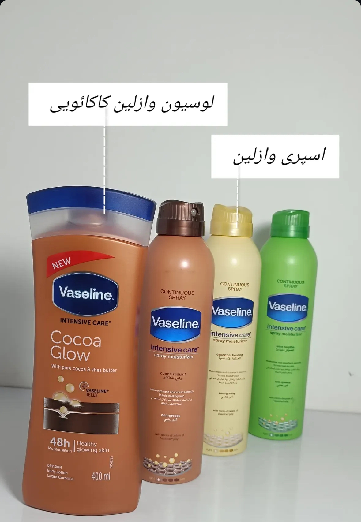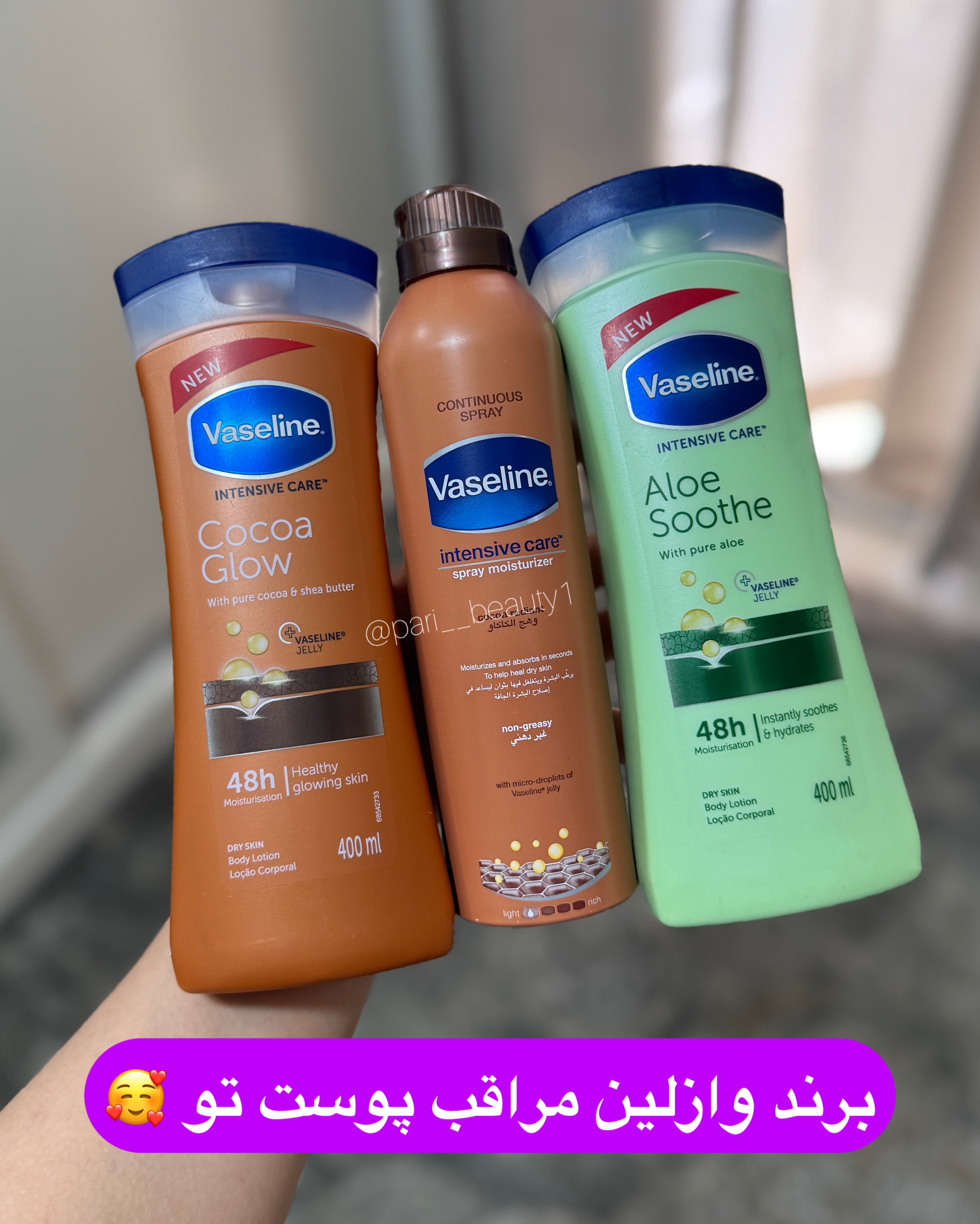 لوسیون بدن وازلین VASELINE اورجینال موجود در دو رایحه آلوئه ورا و شکلات کاکائو کاملا اصلی و اورجینال🍫🍃