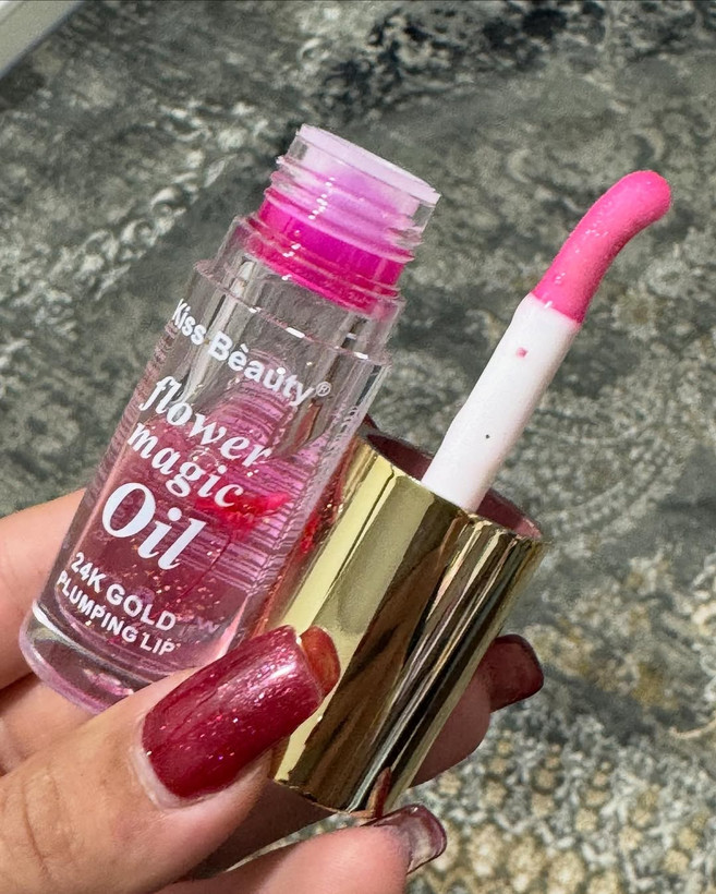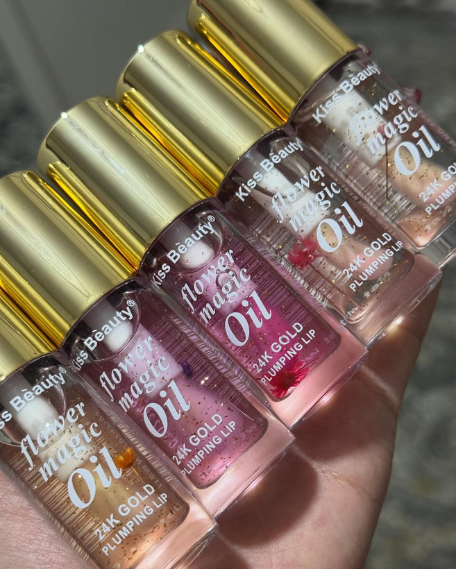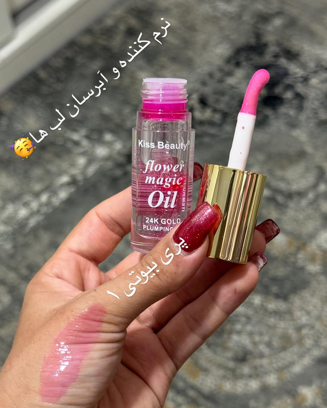 لیپ اویل حرارتی گلدار و طلا دار کیس بیوتی🎀🩷🥰