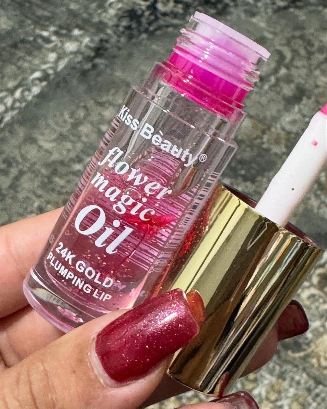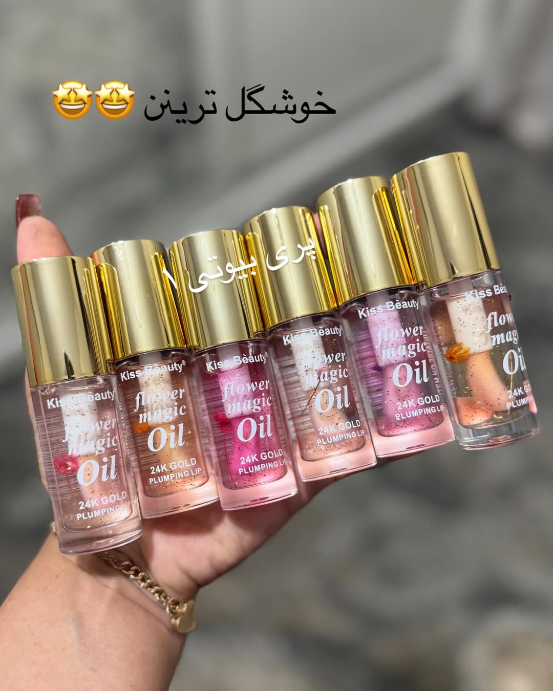 لیپ اویل حرارتی گلدار و طلا دار کیس بیوتی🎀🩷🥰