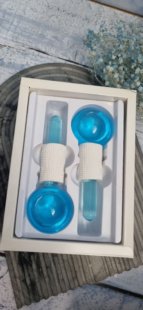 آیس رولر یا گوی یخی ماساژور صورت و ضد چروک رنگ آبی ساده